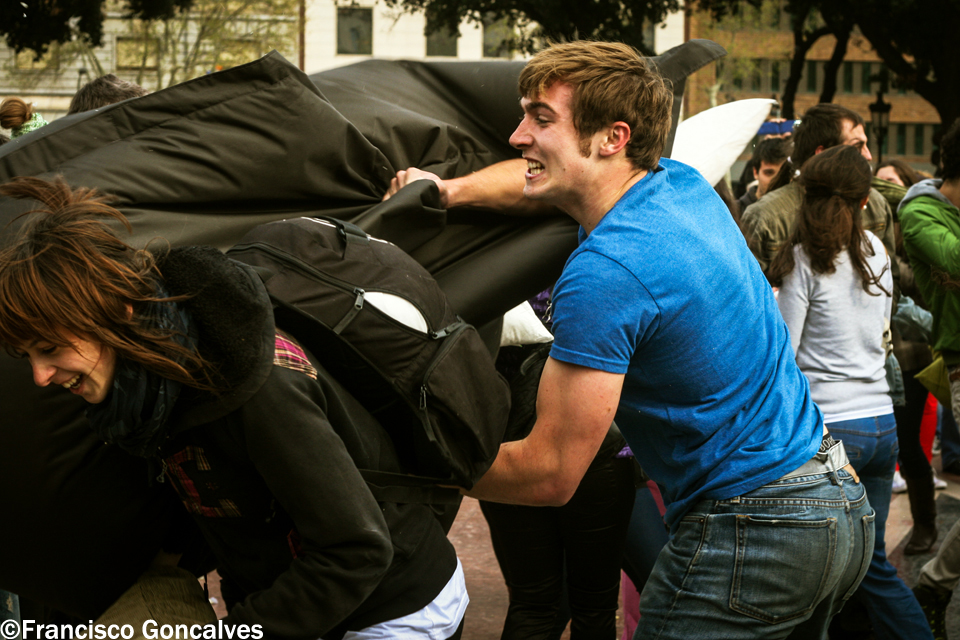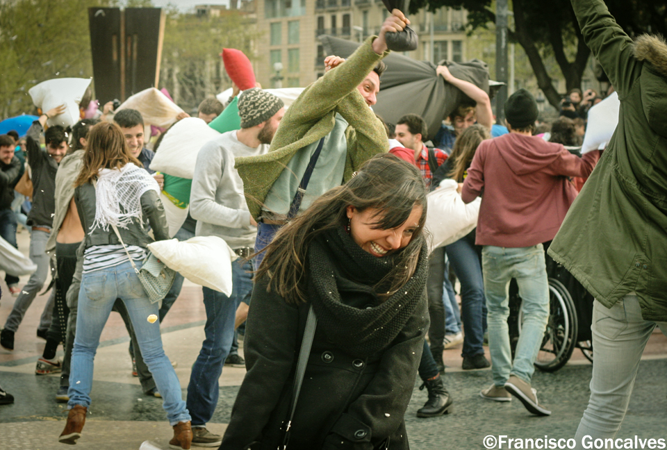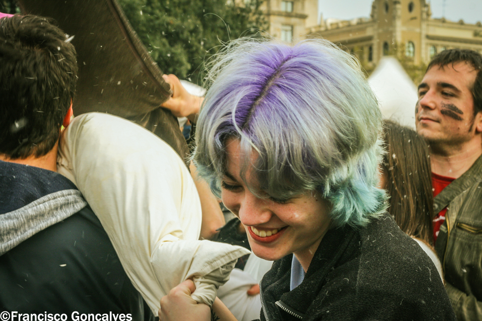 Como todos los años, cientos de “guerreros” se reunieron en la Plaça Catalunya para celebrar la tradicional Guerra de Almohadas o Pillow Fight, un flashmob mundial que se realiza en muchas ciudades el mismo día. A diferencia de ediciones anteriores, esta vez no tenía pensado ir, ¡pero por un cambio de planes a última hora tuve que pasar por la plaza justo a la hora del evento! Lo único malo es que  tenía mi cámara “pequeña” con el .50mm y sólo pude quedarme unos pocos minutos… ¡pero aún así estuvo genial y ya espero participar en la del 2014!